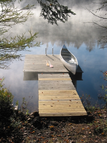 After we arrive at the parking lot, we unlock the boat, retrieve the paddles that we keep lashed to the seats, and paddle approximately 1/2 mile to the dock at our camp. Once at the camp, we put our 12' Alumacraft in the water and attach an 8 horse power Johnson, both of which are stashed at the camp. This makes it a lot easier to traverse the lake from the camp to the dock and car. Having said that, there is something very appealing about motorless transport. I can honestly say that if all the residents of the lake agreed to eliminate motor powered transport, I would happily comply (There is no danger that this will ever happen however, at least until we deplete the planet's petroleum reserves)